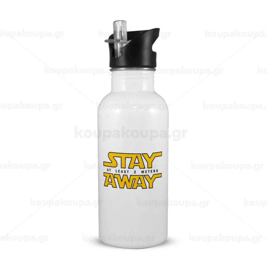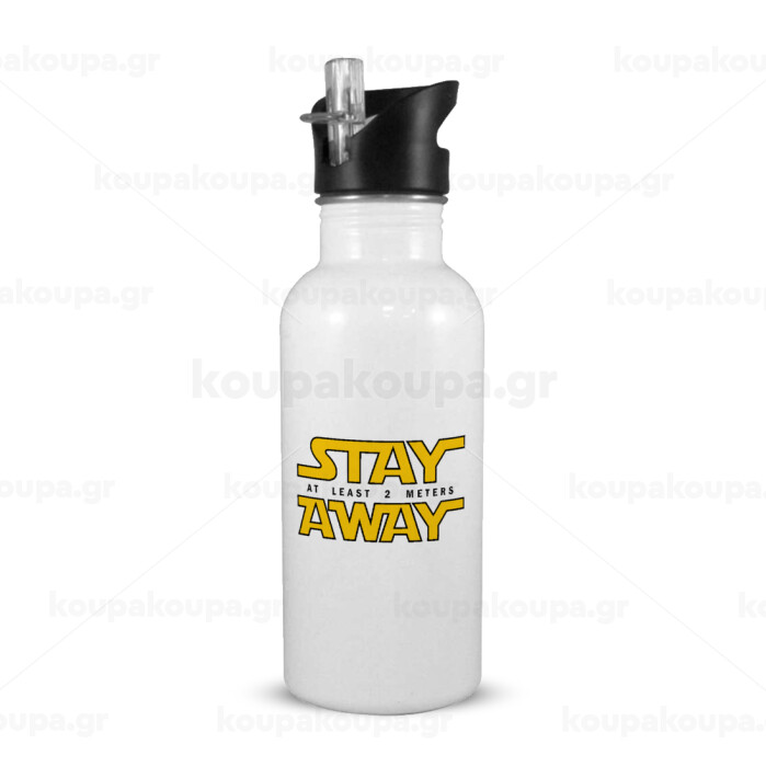 Stay Away, White water bottle with straw, stainless steel 600ml