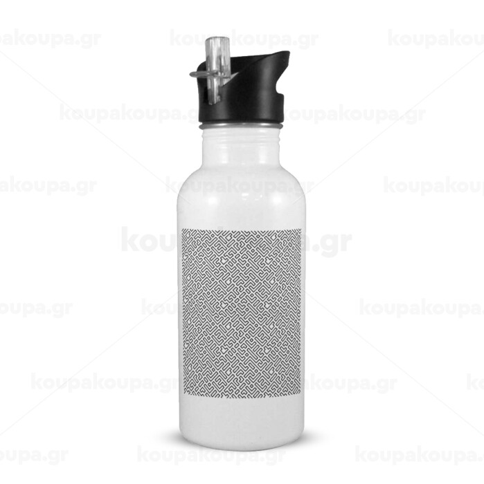 Doodle Maze, White water bottle with straw, stainless steel 600ml