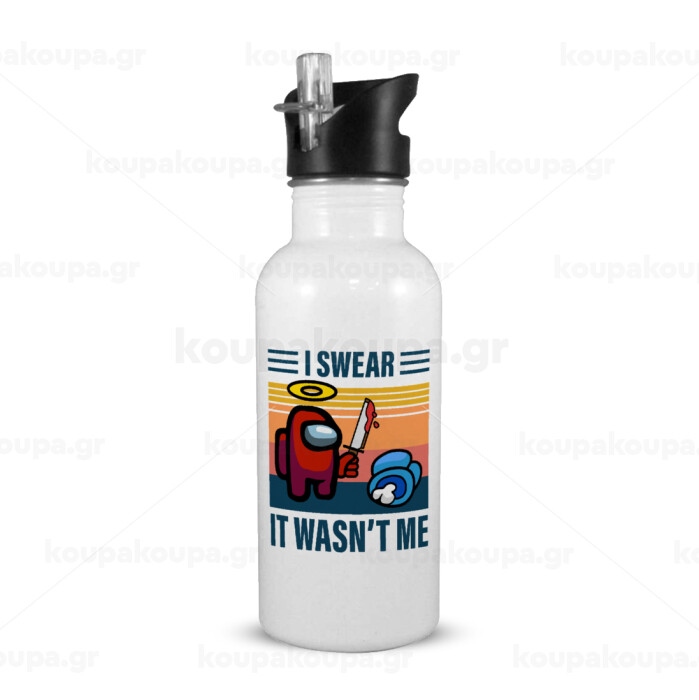 Among us, I swear it wasn't me, White water bottle with straw, stainless steel 600ml