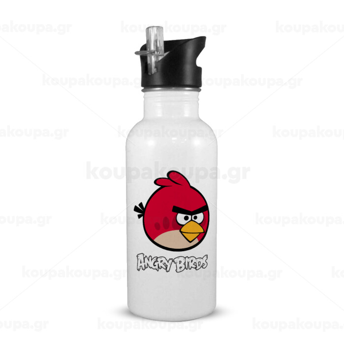 Angry birds Terence, White water bottle with straw, stainless steel 600ml
