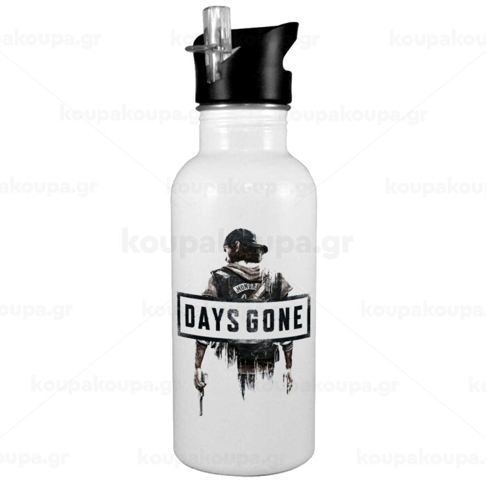 Day's Gone, White water bottle with straw, stainless steel 600ml