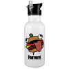 Fortnite Durr Burger, White water bottle with straw, stainless steel 600ml