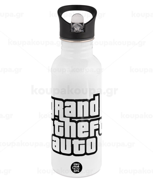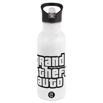 GTA (grand theft auto), White water bottle with straw, stainless steel 600ml