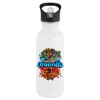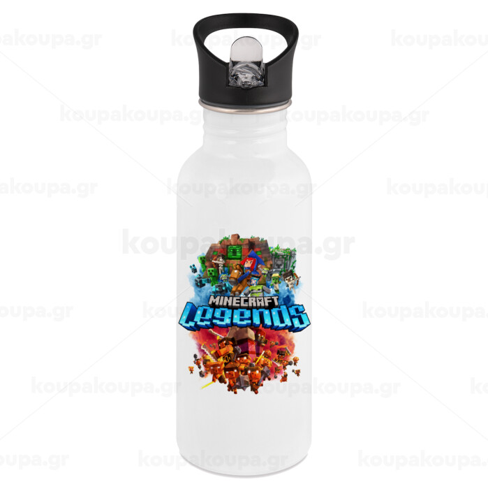 Minecraft legends, White water bottle with straw, stainless steel 600ml