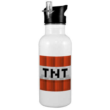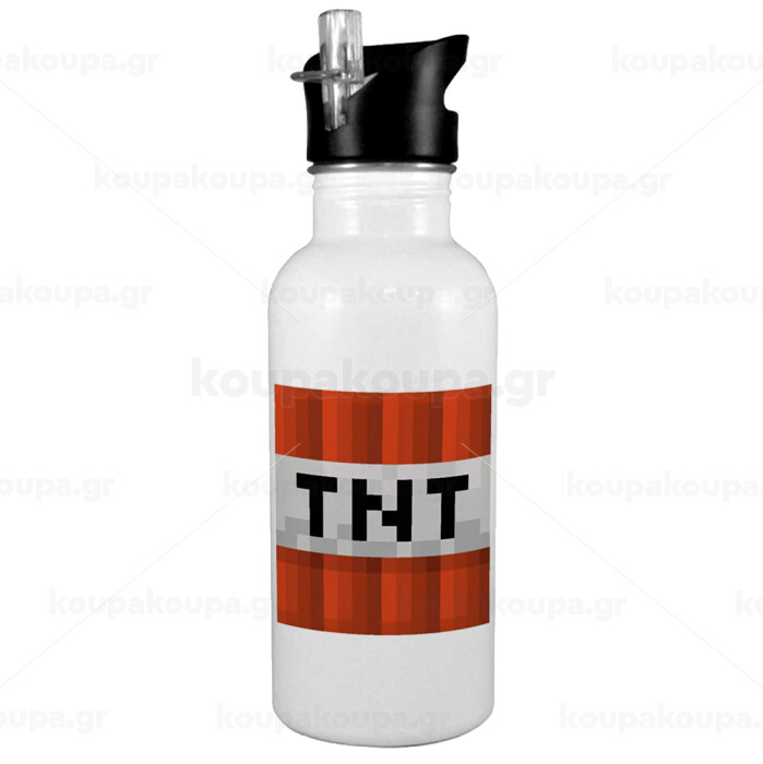 Minecraft TNT, White water bottle with straw, stainless steel 600ml