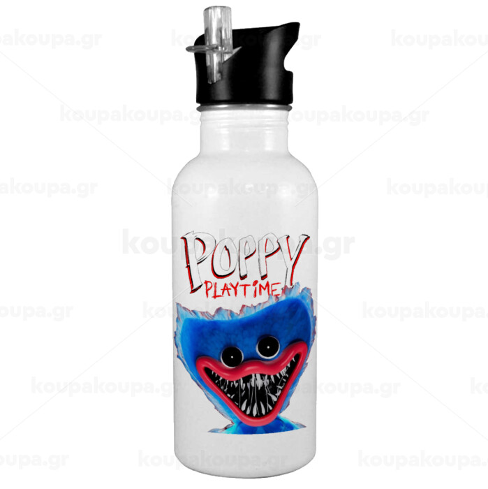 Poppy Playtime Huggy wuggy, White water bottle with straw, stainless steel 600ml