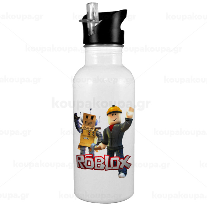 Roblox, White water bottle with straw, stainless steel 600ml