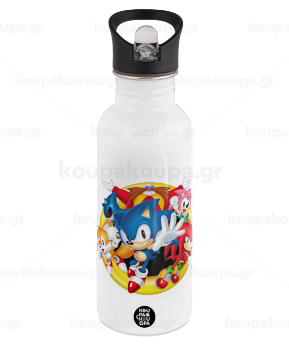 Sonic and friends, White water bottle with straw, stainless steel 600ml