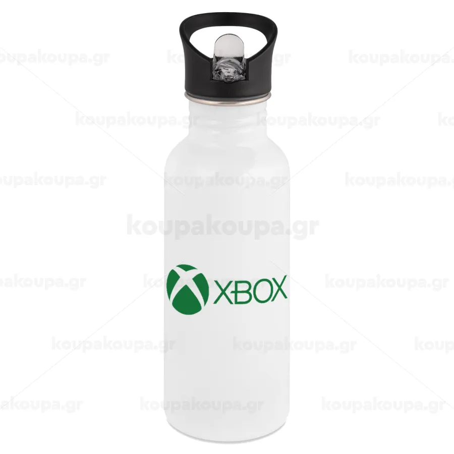 xbox, White water bottle with straw, stainless steel 600ml