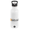 Bitcoin Crypto, White water bottle with straw, stainless steel 600ml