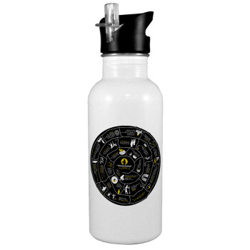 Προχίστορας, White water bottle with straw, stainless steel 600ml
