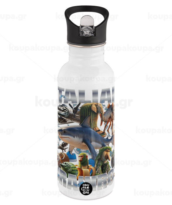 Italian Brainrot, White water bottle with straw, stainless steel 600ml