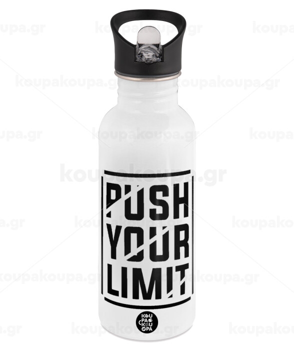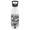 Push your limit, White water bottle with straw, stainless steel 600ml