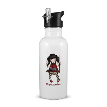 Santoro, White water bottle with straw, stainless steel 600ml