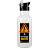 Προσοχή Γίνεται της πουτ.νας, White water bottle with straw, stainless steel 600ml