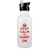 KEEP CALM  and carry on, White water bottle with straw, stainless steel 600ml