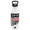 Size matters, White water bottle with straw, stainless steel 600ml