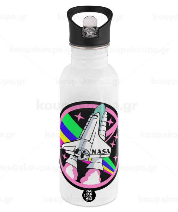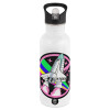 NASA pink, White water bottle with straw, stainless steel 600ml
