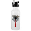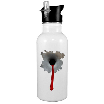 Bullet holes, White water bottle with straw, stainless steel 600ml
