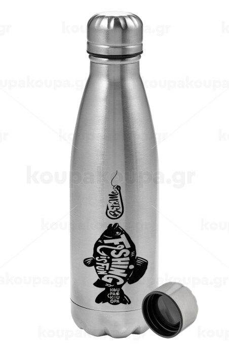 Fishing is fun, Metallic water bottle, stainless steel, 750ml