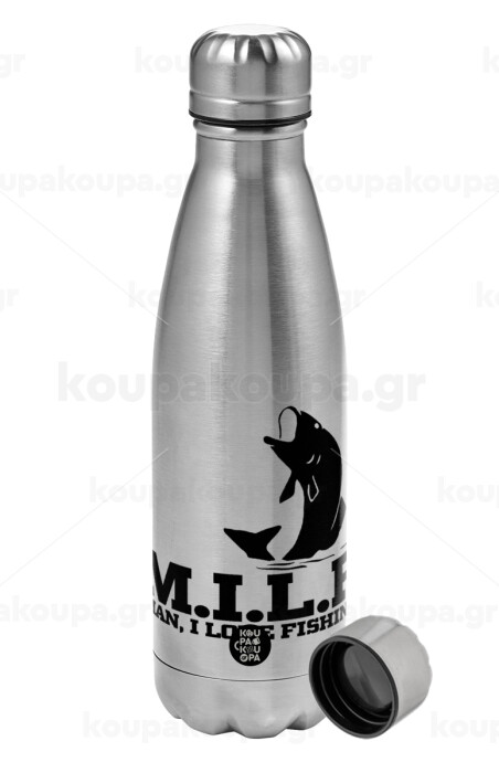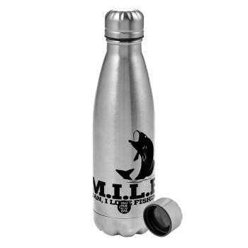 M.I.L.F. Mam i love fishing, Metallic water bottle, stainless steel, 750ml