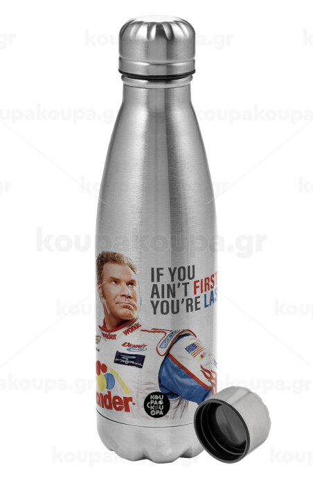 If You Ain't First You're Last Ricky Bobby, Talladega Nights, Metallic water bottle, stainless steel, 750ml
