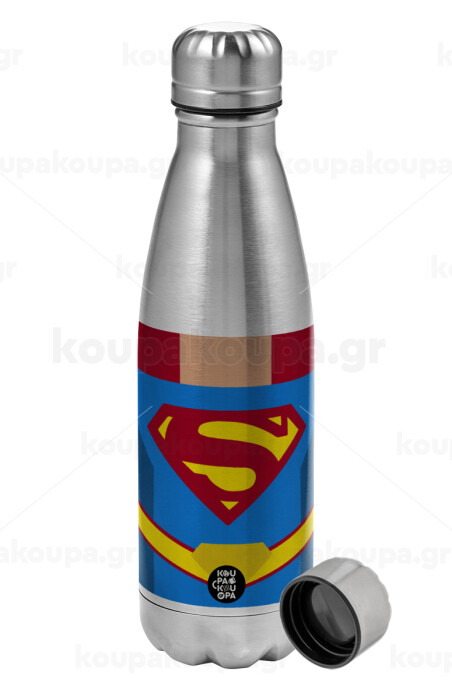 Superman flat, Metallic water bottle, stainless steel, 750ml