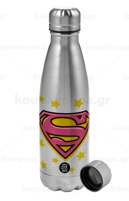 Superman Pink, Metallic water bottle, stainless steel, 750ml