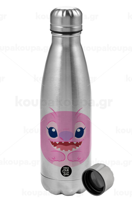 Lilo & Stitch Angel pink, Metallic water bottle, stainless steel, 750ml
