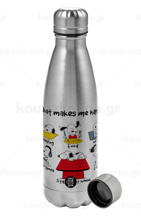 Snoopy what makes my happy, Metallic water bottle, stainless steel, 750ml