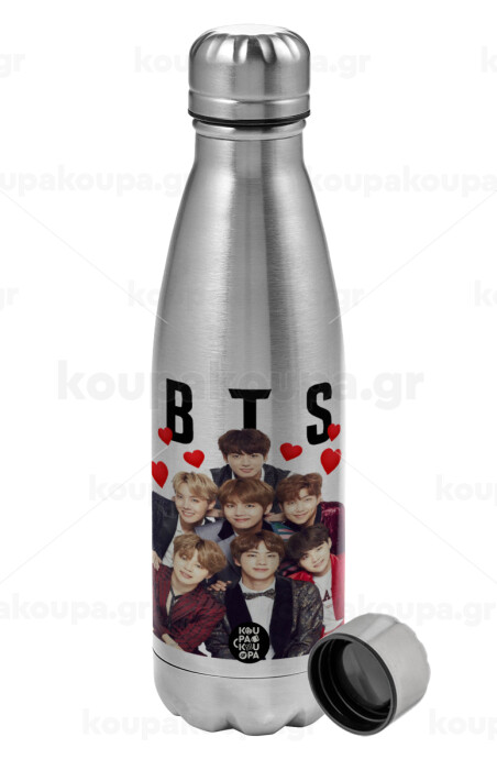 BTS hearts, Metallic water bottle, stainless steel, 750ml