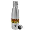 Bottle 750ml, with single wall (NOT THERMAL) made of stainless steel of excellent quality with vibrant colors and durability over time. Hand wash recommended. Suitable for children.