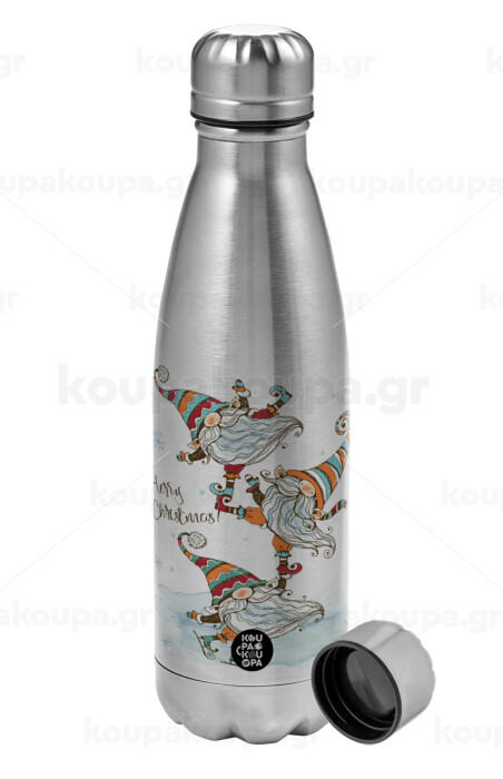 Christmas nordic gnomes, Metallic water bottle, stainless steel, 750ml