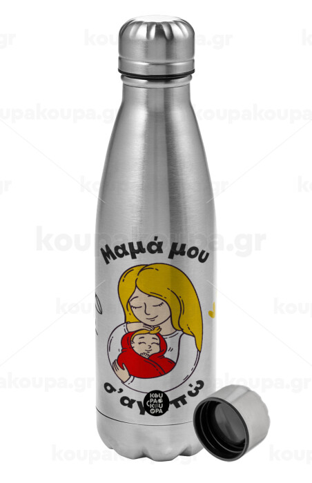 Μανούλα σ'αγαπώ αγκαλιά!, Metallic water bottle, stainless steel, 750ml