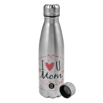 I Love you Mom pink, Metallic water bottle, stainless steel, 750ml