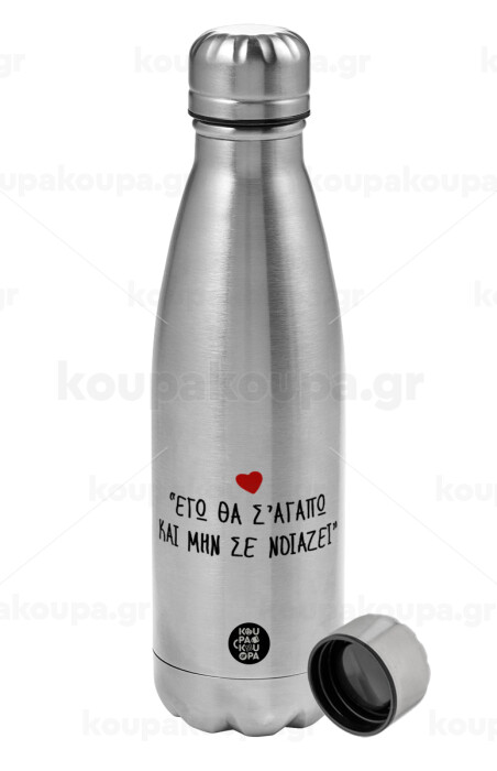 ΕΓΩ ΘΑ Σ’ΑΓΑΠΩ ΚΑΙ ΜΗΝ ΣΕ ΝΟΙΑΖΕΙ..., Metallic water bottle, stainless steel, 750ml