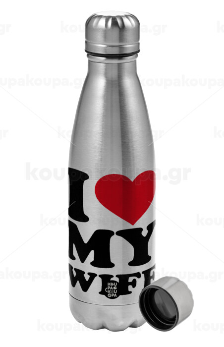 I Love my Wife, Metallic water bottle, stainless steel, 750ml