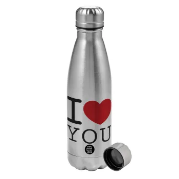 I Love you classic, Metallic water bottle, stainless steel, 750ml