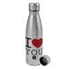 I Love you classic, Metallic water bottle, stainless steel, 750ml