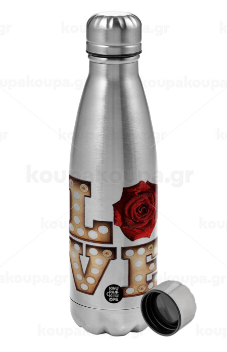 Love lights and roses, Metallic water bottle, stainless steel, 750ml