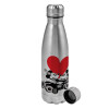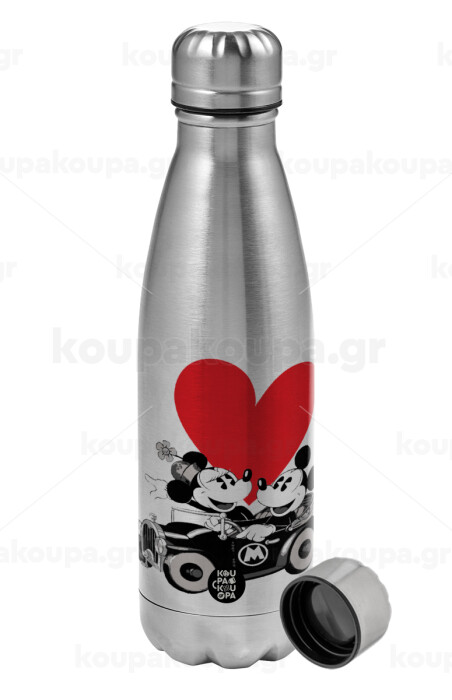 Mickey & Minnie love car, Metallic water bottle, stainless steel, 750ml