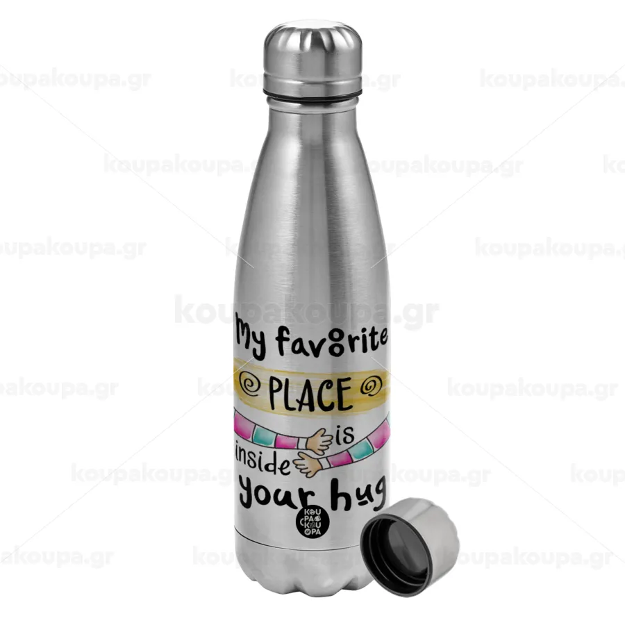 My favorite place is inside your HUG, Metallic water bottle, stainless steel, 750ml