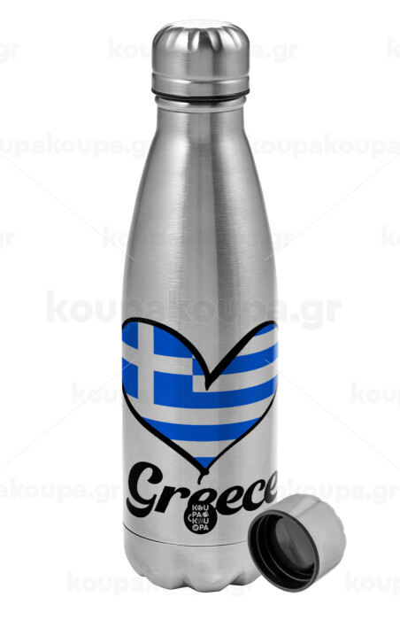 Greece flag, Metallic water bottle, stainless steel, 750ml