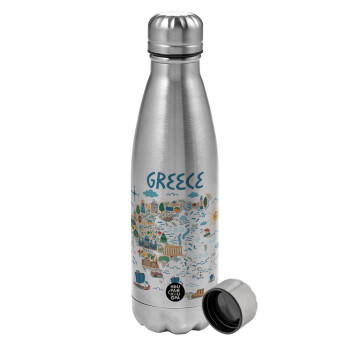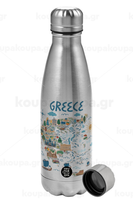 Greek map, Metallic water bottle, stainless steel, 750ml