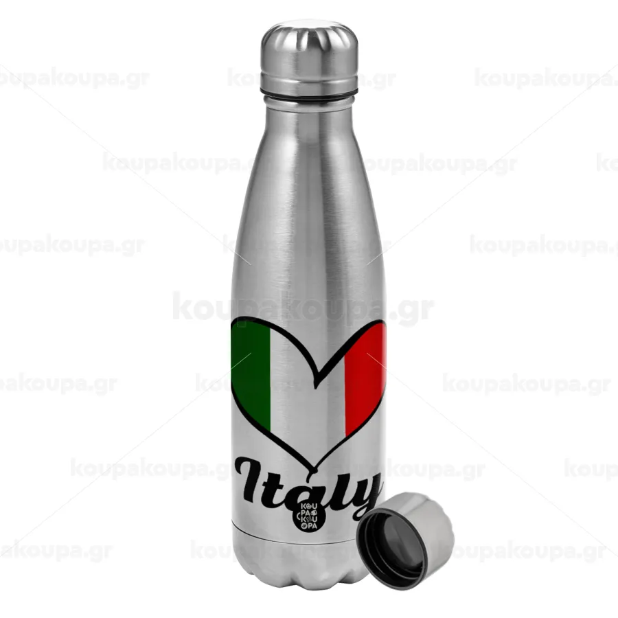 Italy flag, Metallic water bottle, stainless steel, 750ml