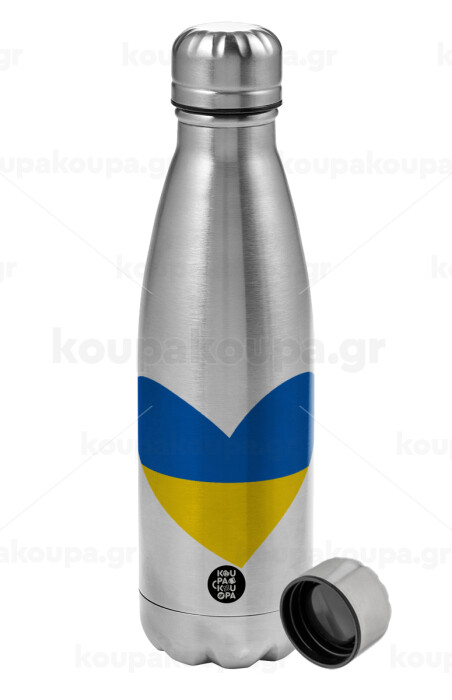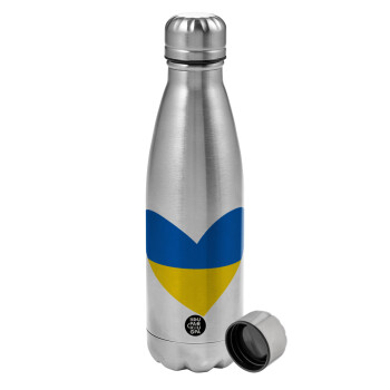 UKRAINE heart, Metallic water bottle, stainless steel, 750ml