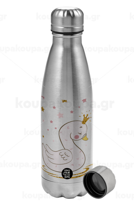 Crowned swan, Metallic water bottle, stainless steel, 750ml