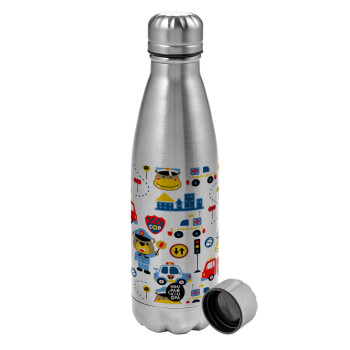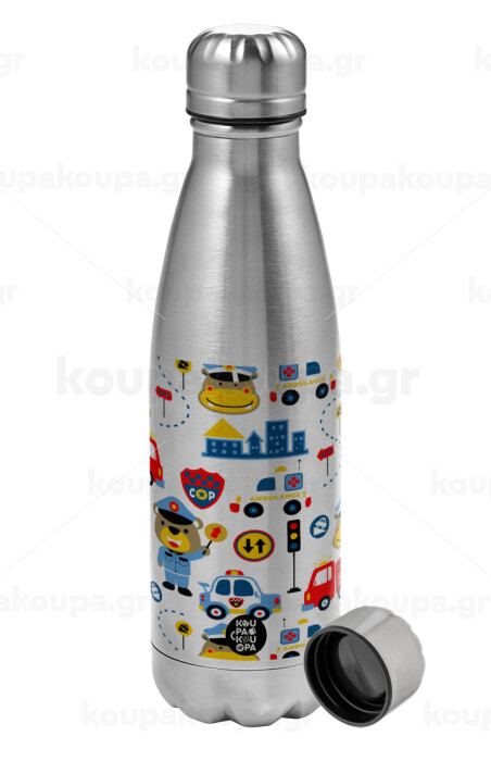 Rescue team cartoon, Metallic water bottle, stainless steel, 750ml