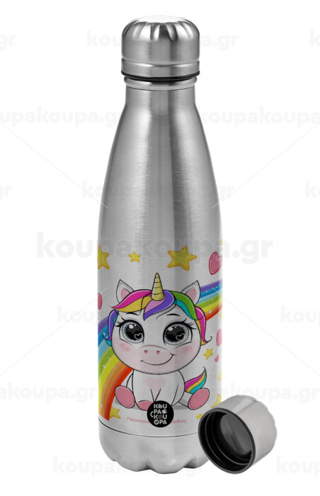 Unicorn baby με όνομα, Metallic water bottle, stainless steel, 750ml