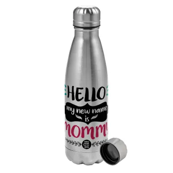 Hello, my new name is Mommy, Metallic water bottle, stainless steel, 750ml
